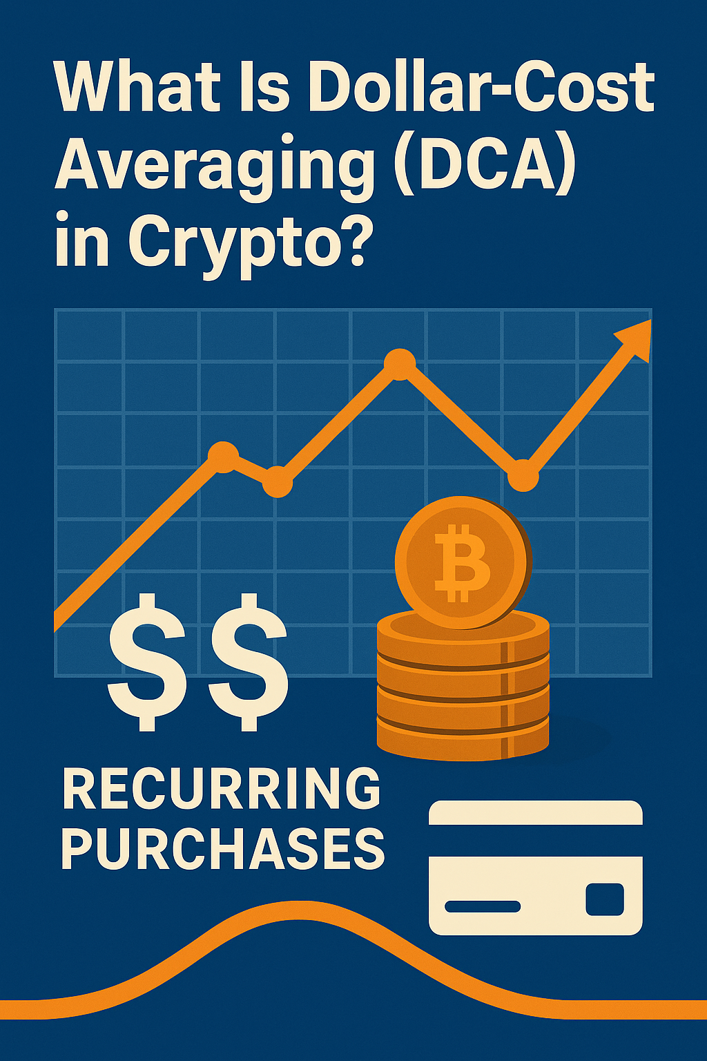 Dollar-cost averaging (DCA) in crypto means investing a fixed amount into a cryptocurrency at regular intervals, regardless of price. Over time, this strategy can help smooth out the effects of volatility and reduce the risk of buying at a market peak.